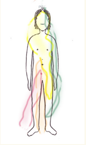 Bei Krankheit oder Schüchternheit, ist die Aura fast gänzlich auf den körperlichen Körper zurückgezogen.